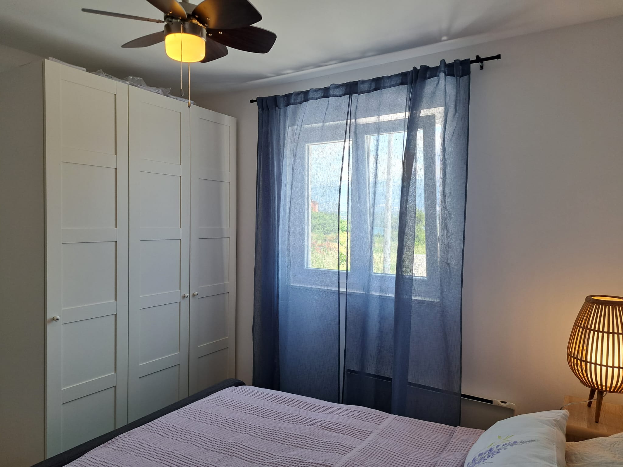 - Dvije spavaće sobe – jedna s bračnim krevetom, druga sa krevetom za 1 osobe krevetom, s pogledom na Velebit i more u daljini